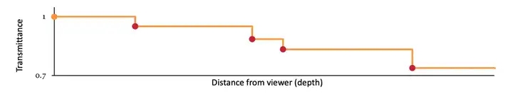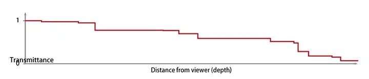 但这并没有比 Per-Pixel Linked List 更优秀。一个很好的思路是==将能见度函数近似的表示为一个单调递减的定长数组==。比如:
